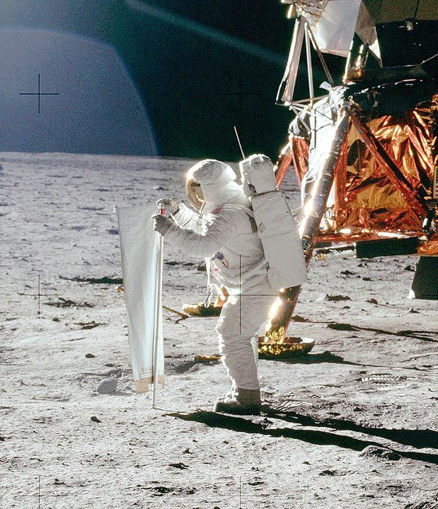 Après trois éditions aux Canaries et une en Norvège, Starmus arrive en Suisse, sur proposition de l’astronaute national Claude Nicollier (un habitué) et de la marque Oméga, dont les montres sont au poignet des astronautes de la NASA depuis 50 ans. Il y a un demi-siècle en effet, Neil Armstrong et Buzz Aldrin plantaient le drapeau américain sur la Lune. Mais avant, ils avaient pris soin de déployer une feuille d’aluminium pour collecter des particules de vent solaire, comme il est impossible de le faire sur Terre. L’expérience avait été conçue à l’Université de Berne.