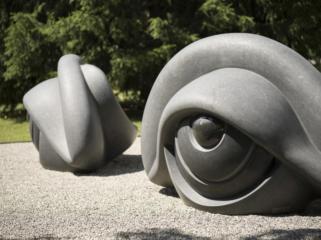 Ces yeux sculptés par Louise Bourgeois dans du granit noir sont aussi des bancs. Ils sont exposés dans le parc du Musée Kirchner à Davos (GR). Kirchner Museum/ Stephan Bösch sda-ats