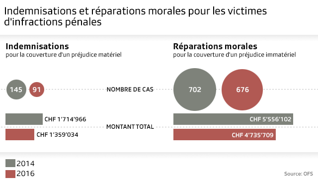 Même si on ne peut pas faire de parallèle direct, les dédommagements et les réparations prévus pour les victimes sont en comparaison très modestes, restant la plupart du temps limités à quelques milliers de francs par cas.