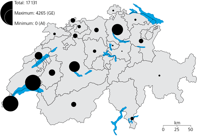 Nombre de personnes originaires du Maghreb par canton (SFM) swissinfo.ch