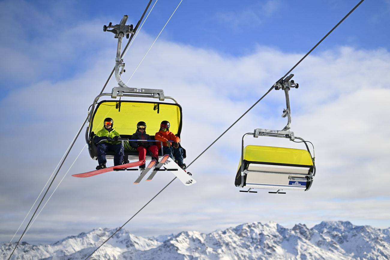 Parmi diverses mesures visant à économiser de l'énergie cet hiver, les stations de ski suisses envisagent une réduction de la vitesse des remontées mécaniques. © Keystone/gian Ehrenzeller