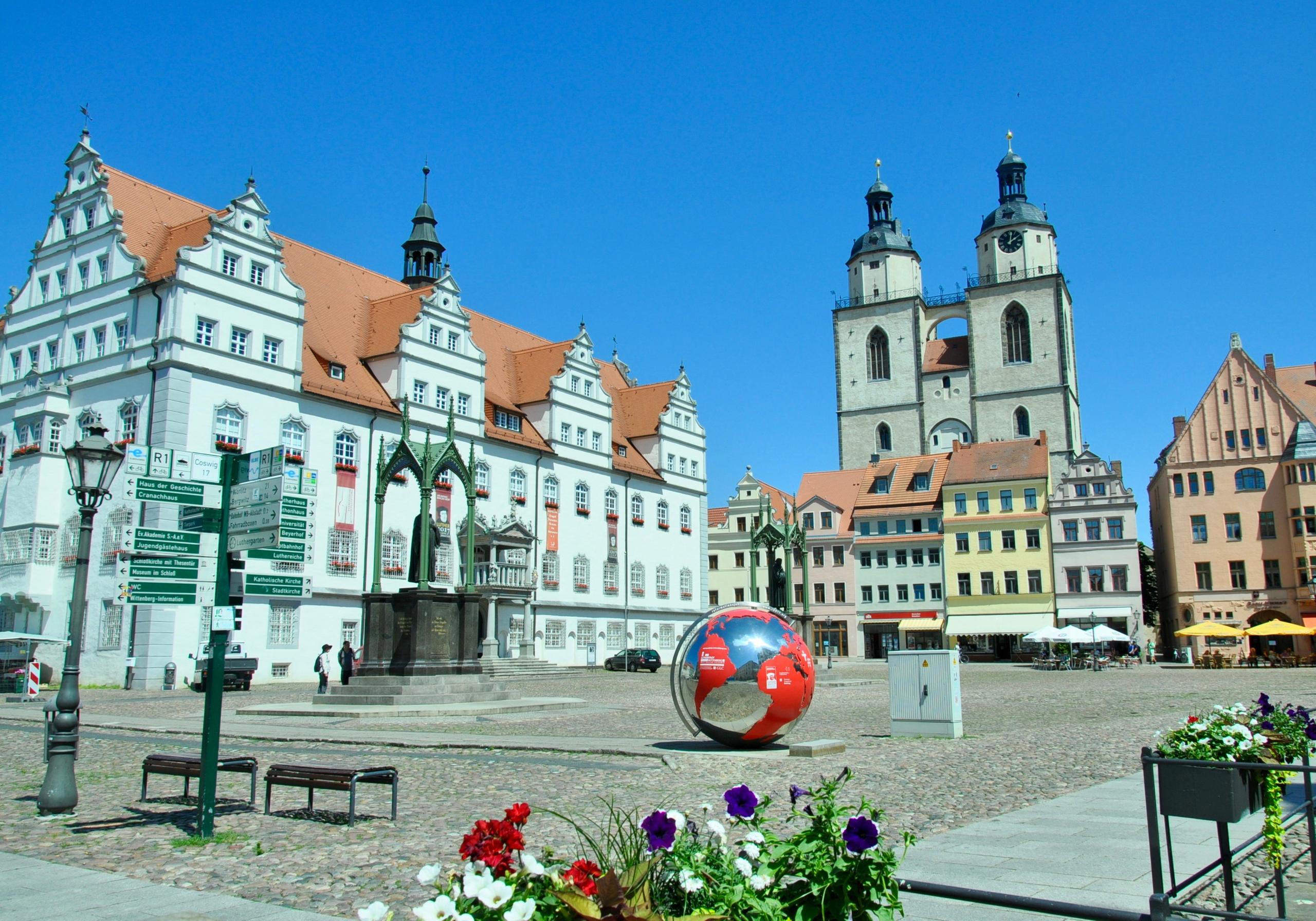 Il y a deux ans encore, elle n’était qu’un vaste chantier. Des échafaudages dissimulaient les principales églises où les touristes ne pouvaient pas entrer. Maintenant encore, il faut regarder entre des palissades pour apercevoir les portes de l’église de la Toussaint sur lesquelles le moine récalcitrant aurait affiché ses thèses il y a 500 ans. Parfois, des groupes en visite guidée s’y faufilent pour aller regarder la nef de l’église, presque entièrement rénovée.