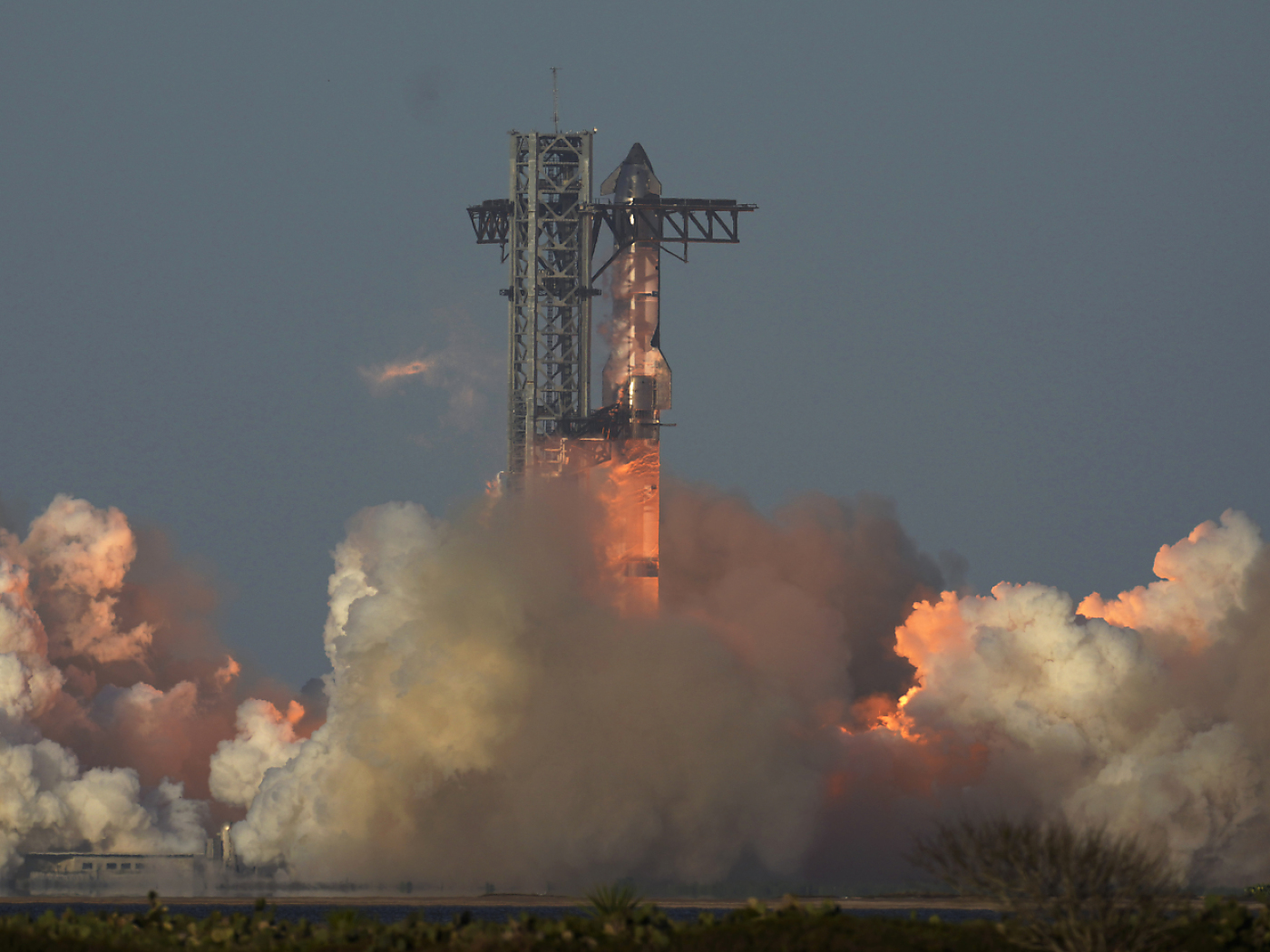 Quelques minutes après le décollage et la séparation des deux étages, le propulseur nommé Super Heavy a entamé une descente contrôlée vers le pas de tir avant d’être immobilisé par des bras mécaniques installés sur la tour de lancement, une manoeuvre très complexe et spectaculaire que l’entreprise a réussie jeudi pour la troisième fois, sous les applaudissements et cris de joie de ses équipes.