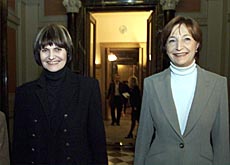 Micheline Calmy-Rey (gauche) et Ruth Lüthi ont été brillament élues par le groupe parlementaire socialiste. Keystone Archive