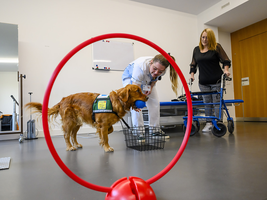 (Keystone-ATS) Un deuxième chien d’assistance arpente les couloirs de l’Hôpital fribourgeois (HFR). La golden retriever Indra, en duo avec une ergothérapeute, propose aux patients une solution thérapeutique à la fois «ludique, stimulante, motivante, apaisante et très efficace».