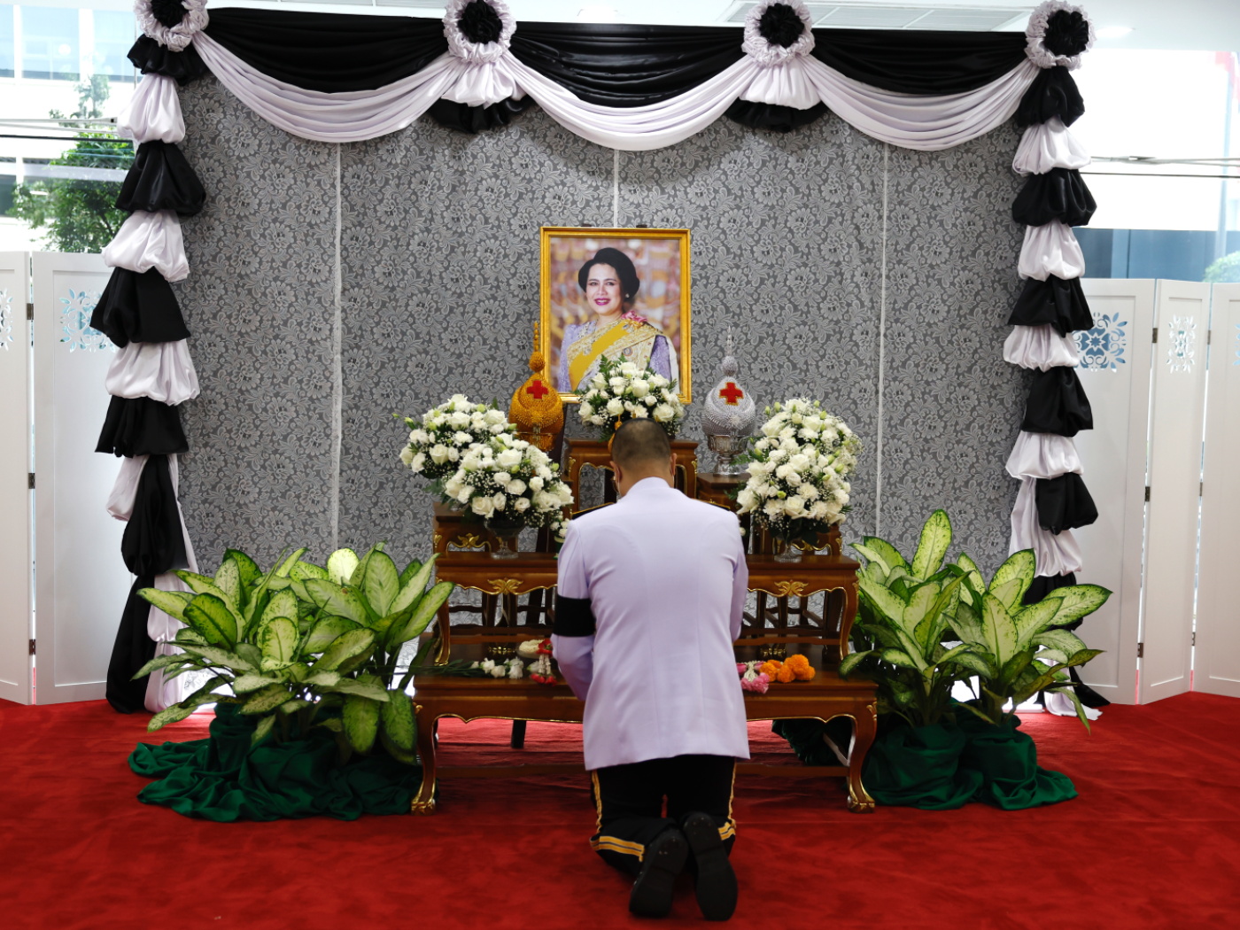Le corps de l’ancienne reine sera transféré dimanche après-midi de l’hôpital Chulalongkorn jusqu’au Palais royal, où il sera exposé en chapelle ardente pendant un an, jusqu’à la cérémonie de crémation.