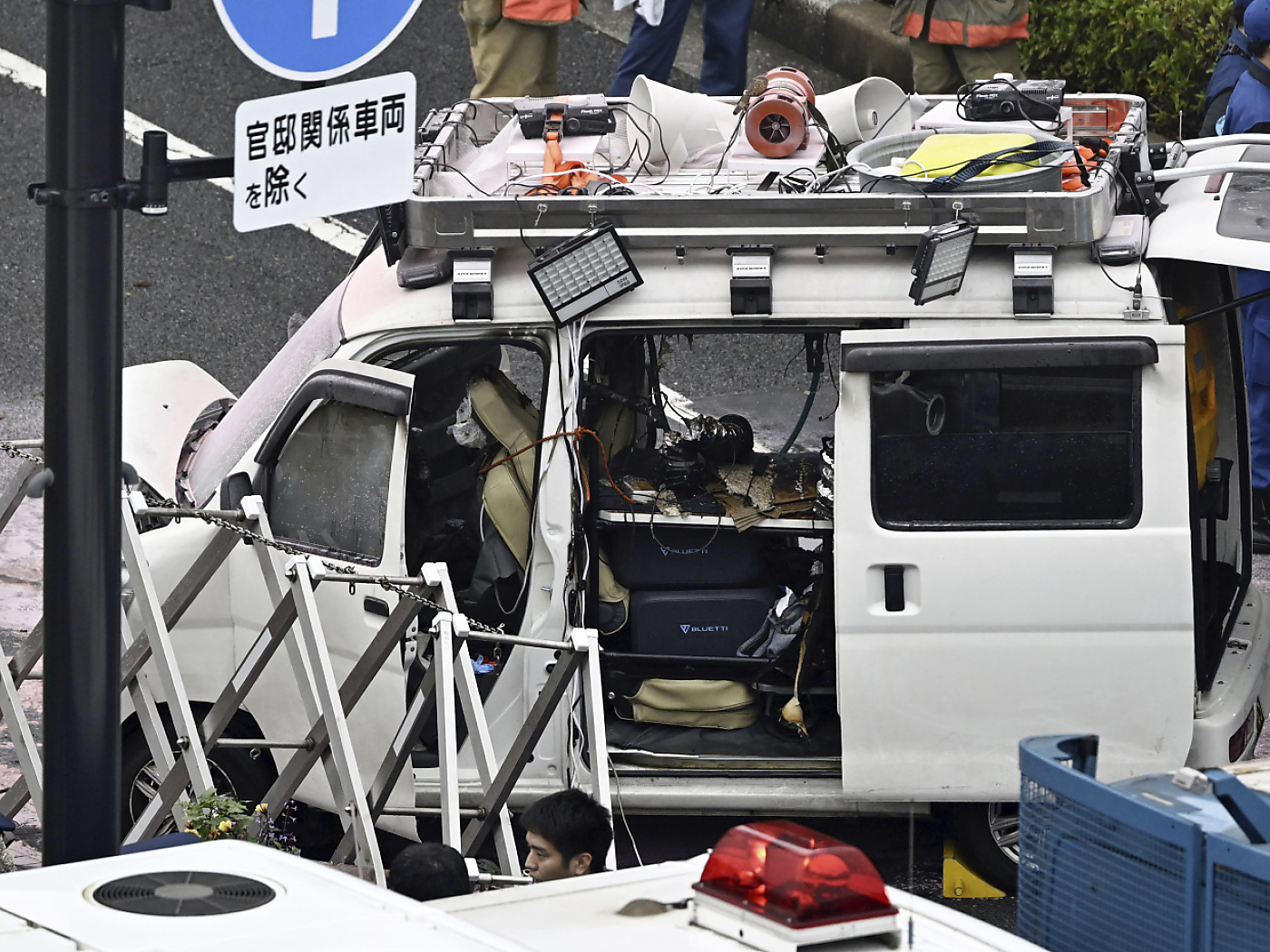 L’incident s’est produit peu avant 06h00 du matin (23h00 vendredi en Suisse). Selon le journal Asahi Shimbun et d’autres médias, plusieurs bombonnes en plastique ont été découvertes dans la voiture du suspect.