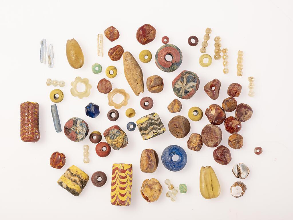 Dans une tombe datant probablement du 6e siècle, les archéologues ont trouvé 350 perles de verre et d'ambre lors de fouilles à Bâle. Service archéologique BS sda-ats