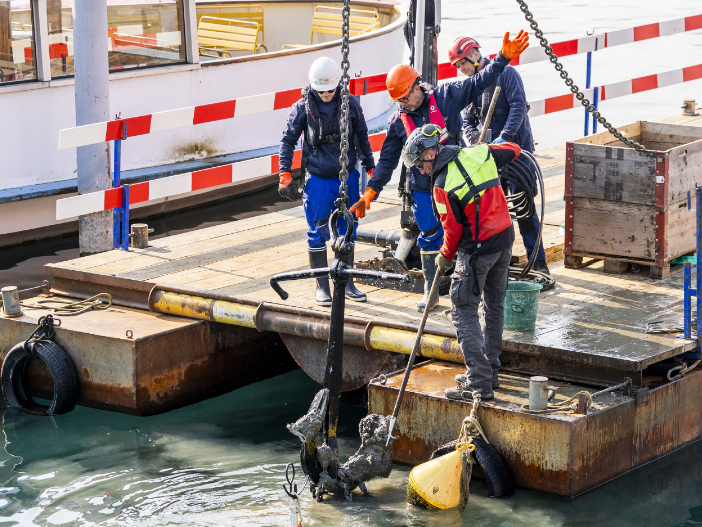 Coincée dans la vase au fond de la rade genevoise, l’ancre du «Montreux» a pu être récupérée lundi. Le bateau Belle Epoque de la CGN avait perdu cette imposante pièce lors d’un accostage raté le 13 mars dernier.