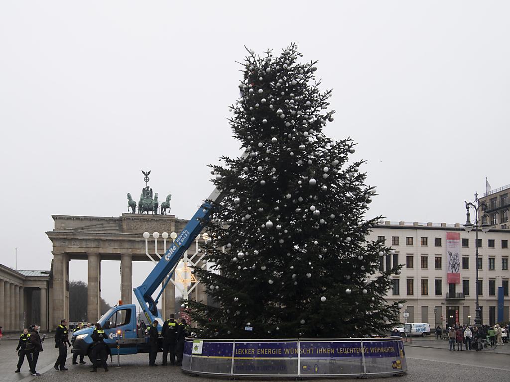 (Keystone-ATS) Des militants pour le climat ont revendiqué mercredi avoir décapité la cime du sapin de Noël érigé devant l’emblématique porte de Brandebourg de Berlin.