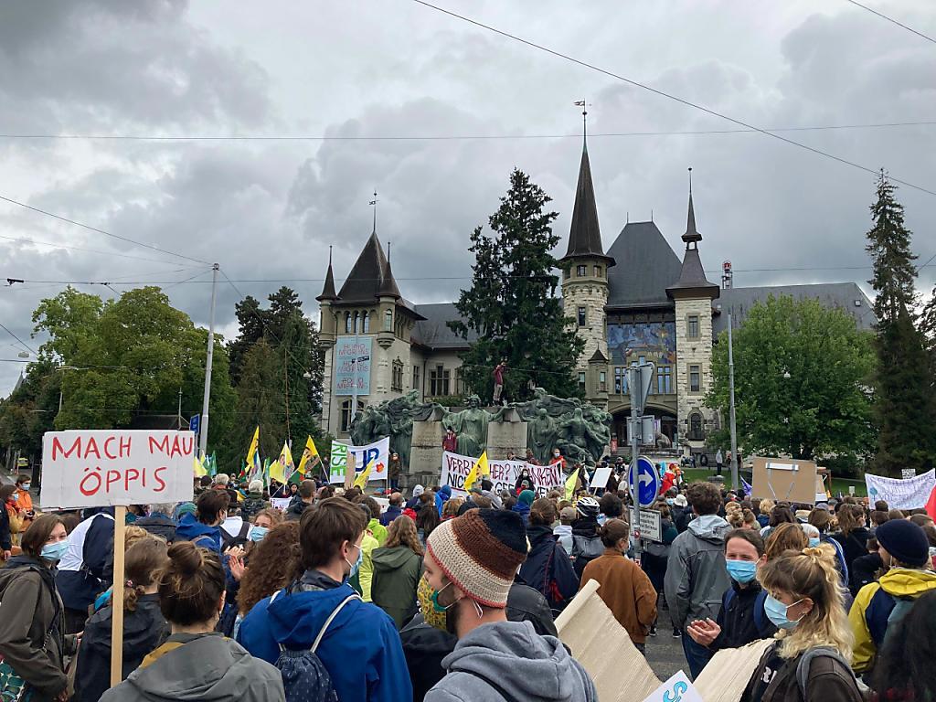 Les manifestants se sont rassemblés vendredi après-midi sur l’Helvetiaplatz. Ils ont marché à travers le centre-ville jusqu’à la Waisenhausplatz, en chantant et en scandant des slogans. La police a toléré le rassemblement non autorisé, mais n’a pas permis aux manifestants de se rendre sur la Place fédéral et en a bloqué l’accès, notamment à l’aide d’un canon à eau.
