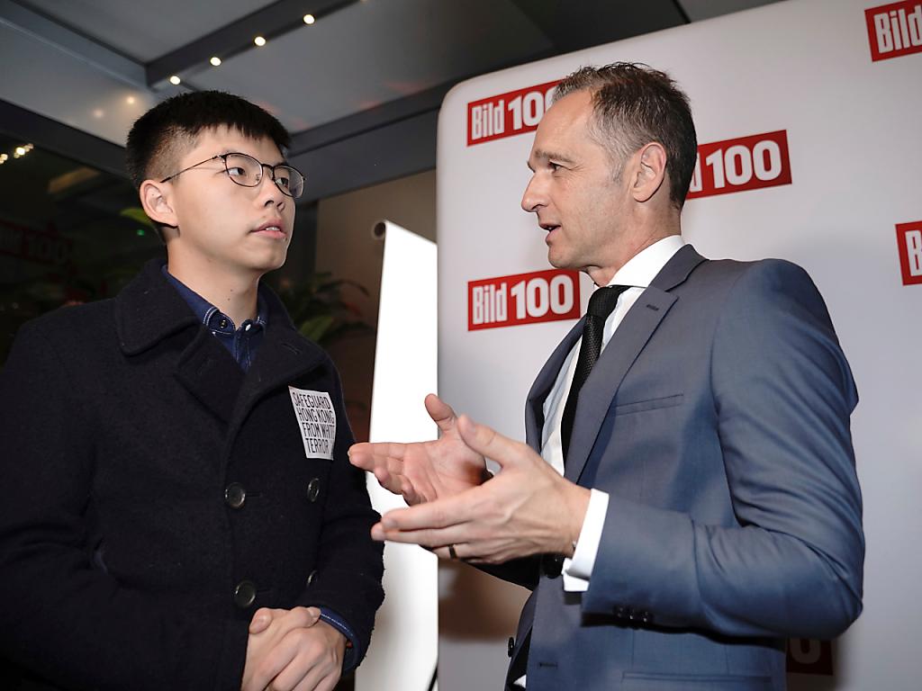 Joshua Wong (G) a discuté lundi soir avec le ministre allemand des Affaires étrangères Heiko Maas (D) des protestations actuelles à Hong Kong. KEYSTONE/AP DPA/MICHAEL KAPPELER sda-ats