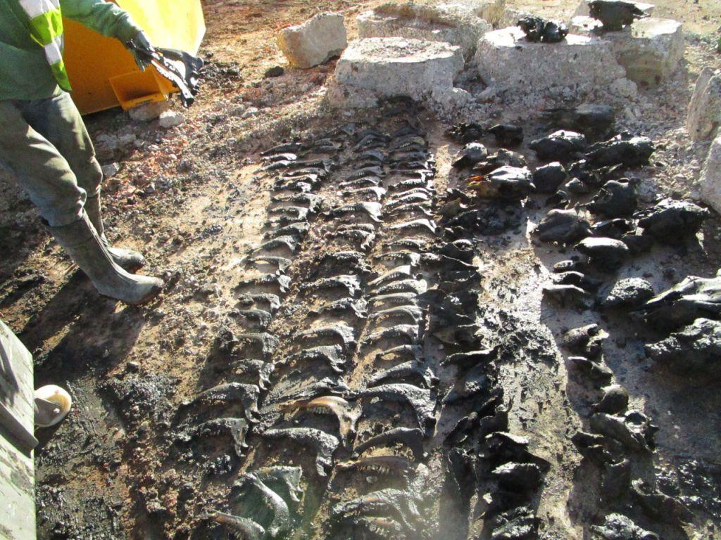 Il s’agit essentiellement d’ossements de bovins. On y trouve aussi des os de chats, de chiens, de lapins, de cochons et de volailles. Il n’a pas encore été possible de déterminer comment les animaux ont été tués et depuis combien de temps les ossements se trouvaient dans la fosse. Rien ne permet d’identifier l’origine des animaux.