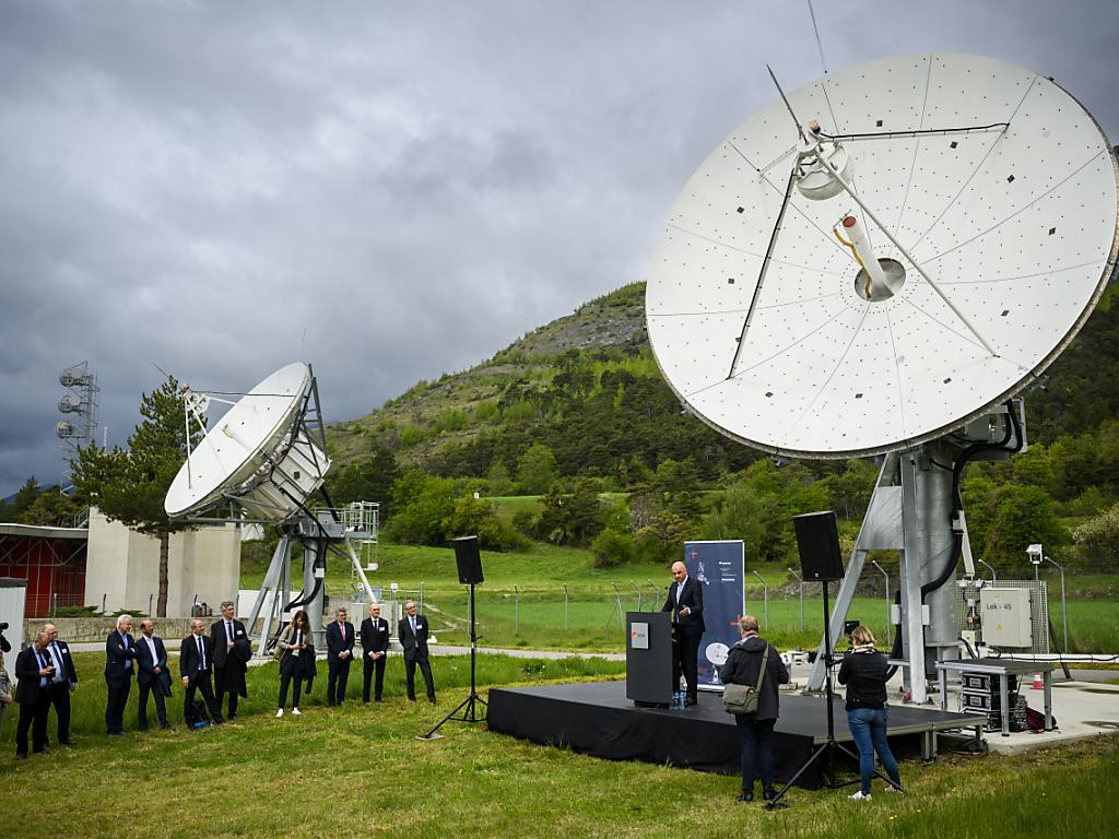 La station de réception satellite a été inaugurée vendredi à Loèche (VS). KEYSTONE/JEAN-CHRISTOPHE BOTT sda-ats
