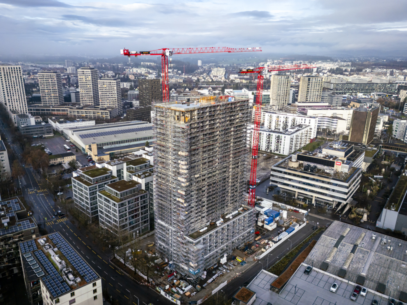 Un échafaudage de 80 mètres menace de s’effondrer à Zurich-Oerlikon