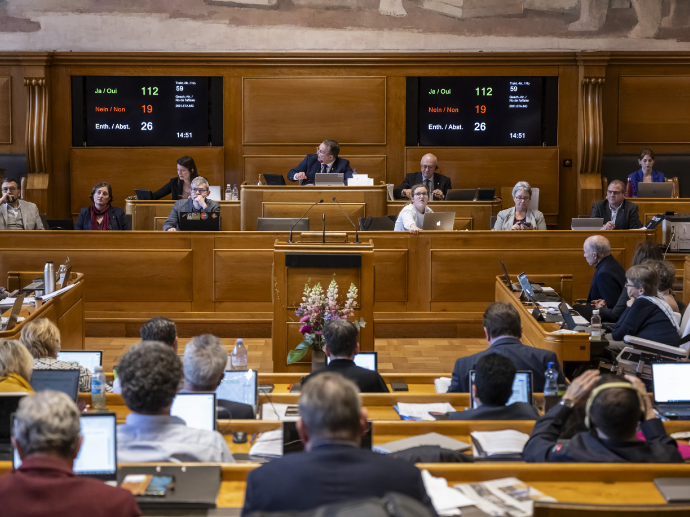 (Keystone-ATS) Les délibérations ont pris fin mardi soir, après un jour et demi de débats. Le budget et la planification financière ont passé la rampe avec 99 oui contre 47 non et 0 abstention. Seuls le PS et les Vert-e-s ont voté contre.