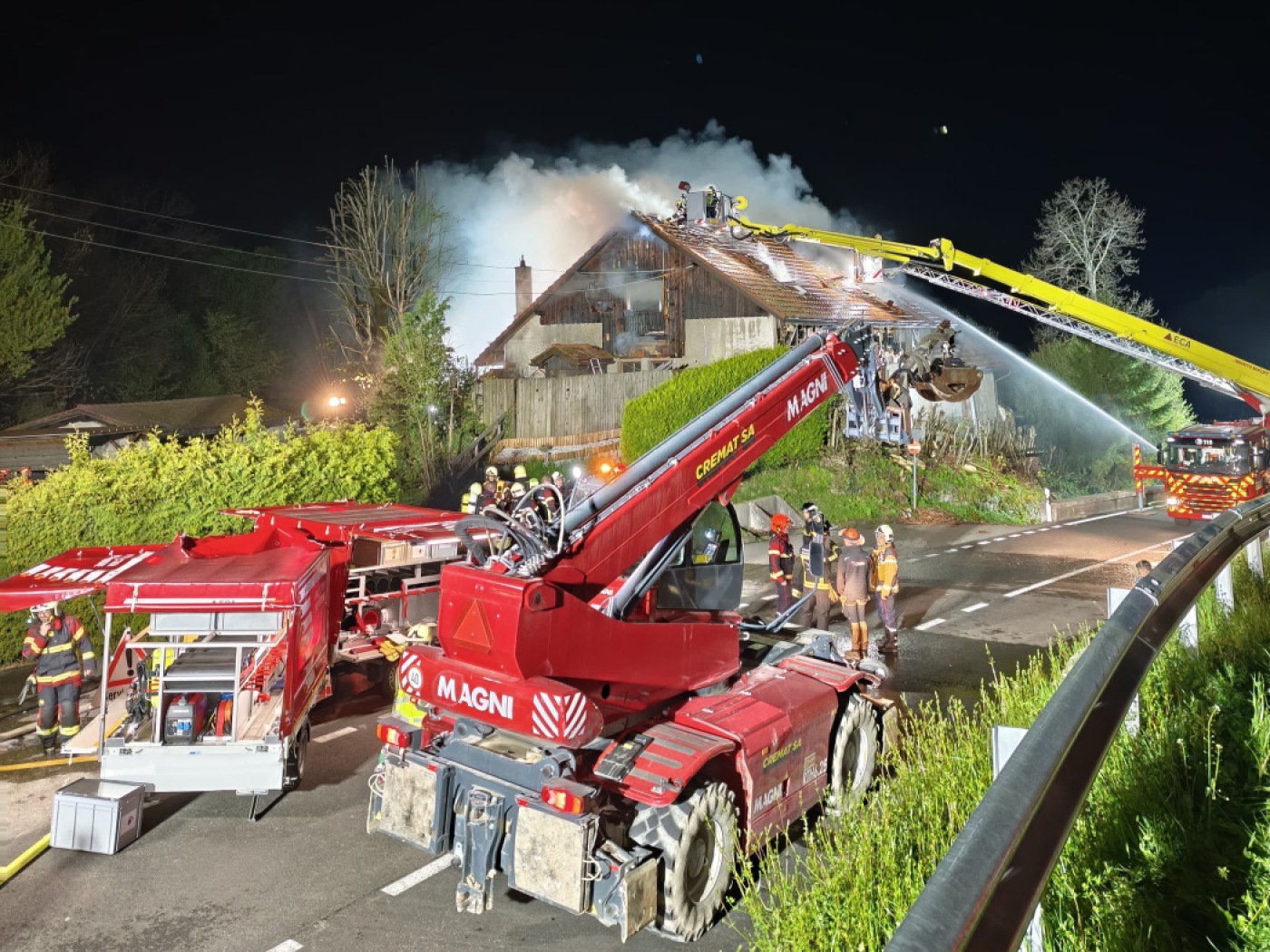 L’incendie s’est produit vers 18h20. La route cantonale a été fermée entre le Giratoire de la Chaux et Châtel-St-Denis. La circulation a été rétablie durant la soirée du samedi.