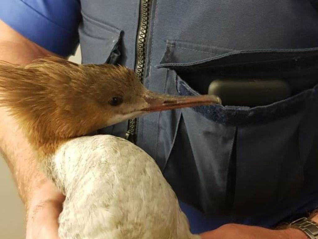 Un jeune harle bièvre sauvé d’une cheminée à Bâle