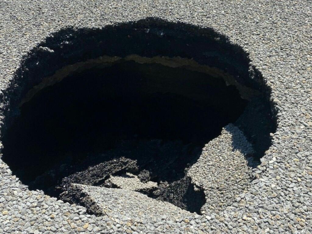 Un trou d'environ un mètre de diamètre s'est formé dans le revêtement. Police cantonale valaisanne sda-ats