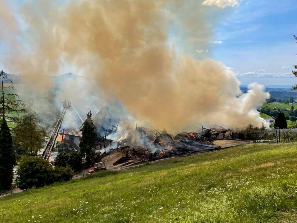 Les forces d’intervention, alertées autour de 14h45, ont pu maîtriser le feu, indique la police cantonale dans un communiqué. Sur place, elles ont constaté que la partie agricole de la ferme était entièrement en feu.
