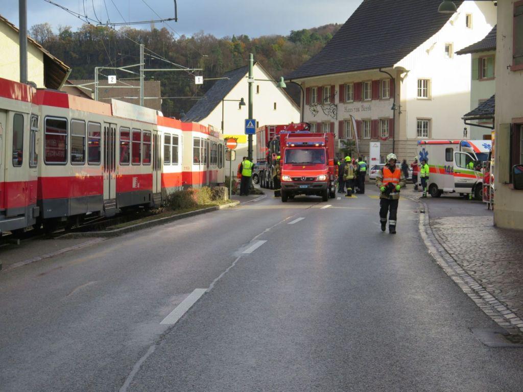 L’accident s’est déroulé un peu avant l’arrêt de Hölstein. Le train circulait en direction de Liestal. Il s’agissait d’une rame de la Waldenburgbahn, un chemin de fer à voie étroite qui circule en cet endroit-là parallèlement à la route.