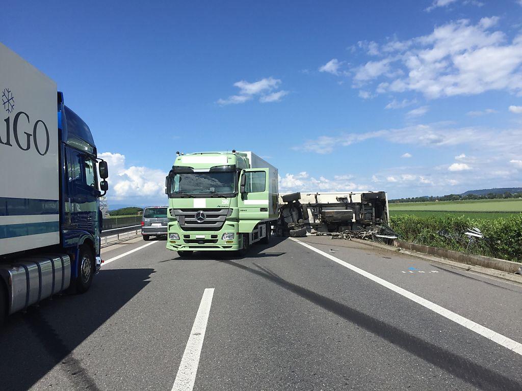 Une remorque se renverse sur l’A1 à la hauteur de Payerne (VD)
