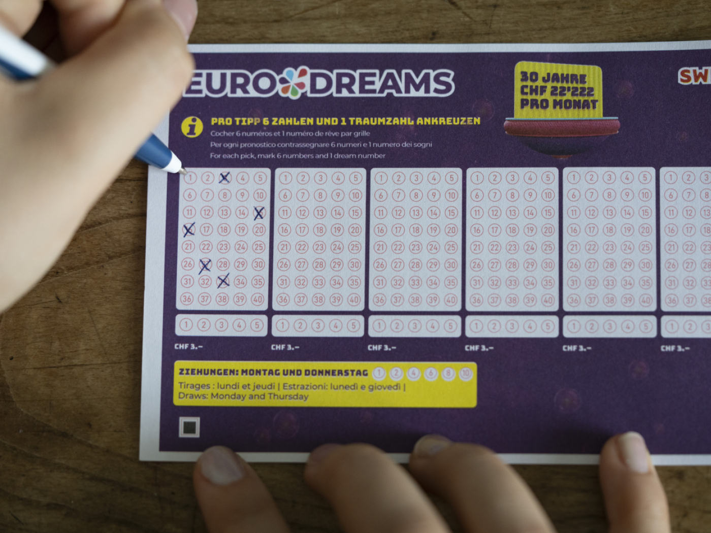 Une personne chanceuse a décroché une rente mensuelle de 2222 francs durant cinq ans grâce à l'Eurodreams lundi soir. Elle a coché les six bons numéros 3, 17, 19, 28, 33 et 40, a annoncé la Loterie romande.