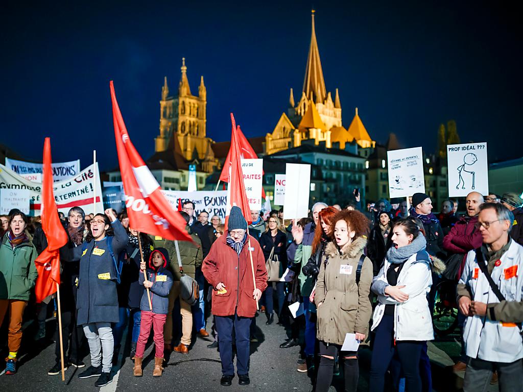 (Keystone-ATS) Environ 4000 personnes ont défilé dans les rues de Lausanne jeudi soir pour manifester leur opposition au plan de révision de la Caisse de pensions de l’Etat de Vaud (CPEV). Tous les gymnases du canton ont par ailleurs débrayé durant l’après-midi.