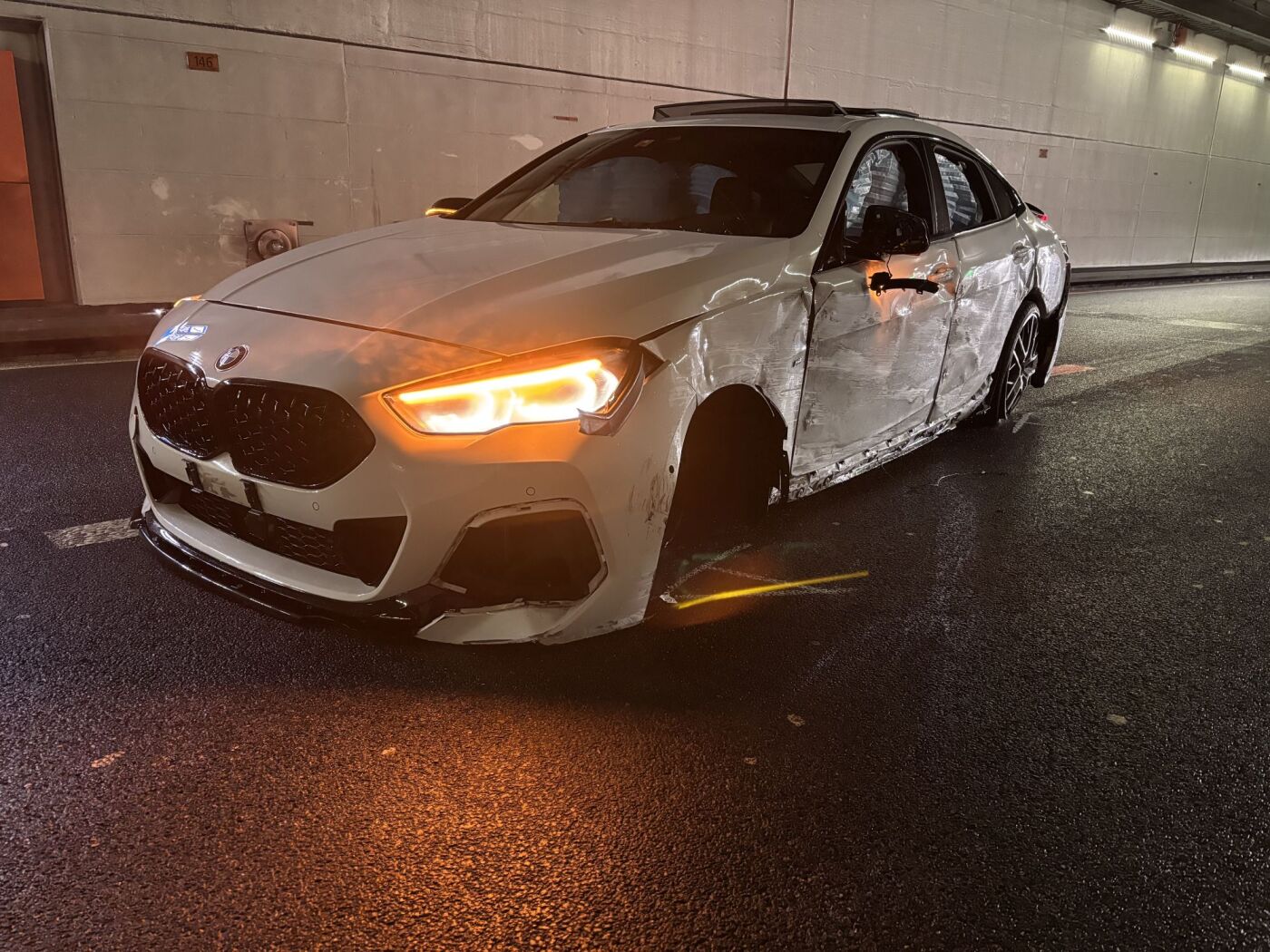 In der Nacht auf Sonntag hat ein 21-jähriger Autofahrer auf der A18 im Schänzlitunnel in Richtung Delémont JU die Kontrolle über seinen BMW verloren. Der Grund war gemäss Polizeiangaben zu schnelles Tempo.