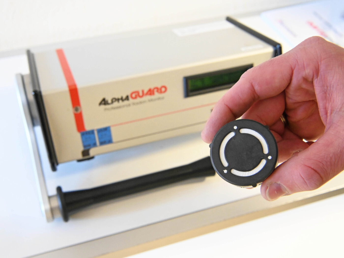 Radon ist ein natürliches, unsichtbares Edelgas, das beim Zerfall von Uran im Boden entsteht und vor allem in erdnahen Räumen wie Kellern aus dem Untergrund in Gebäude eindringen kann.