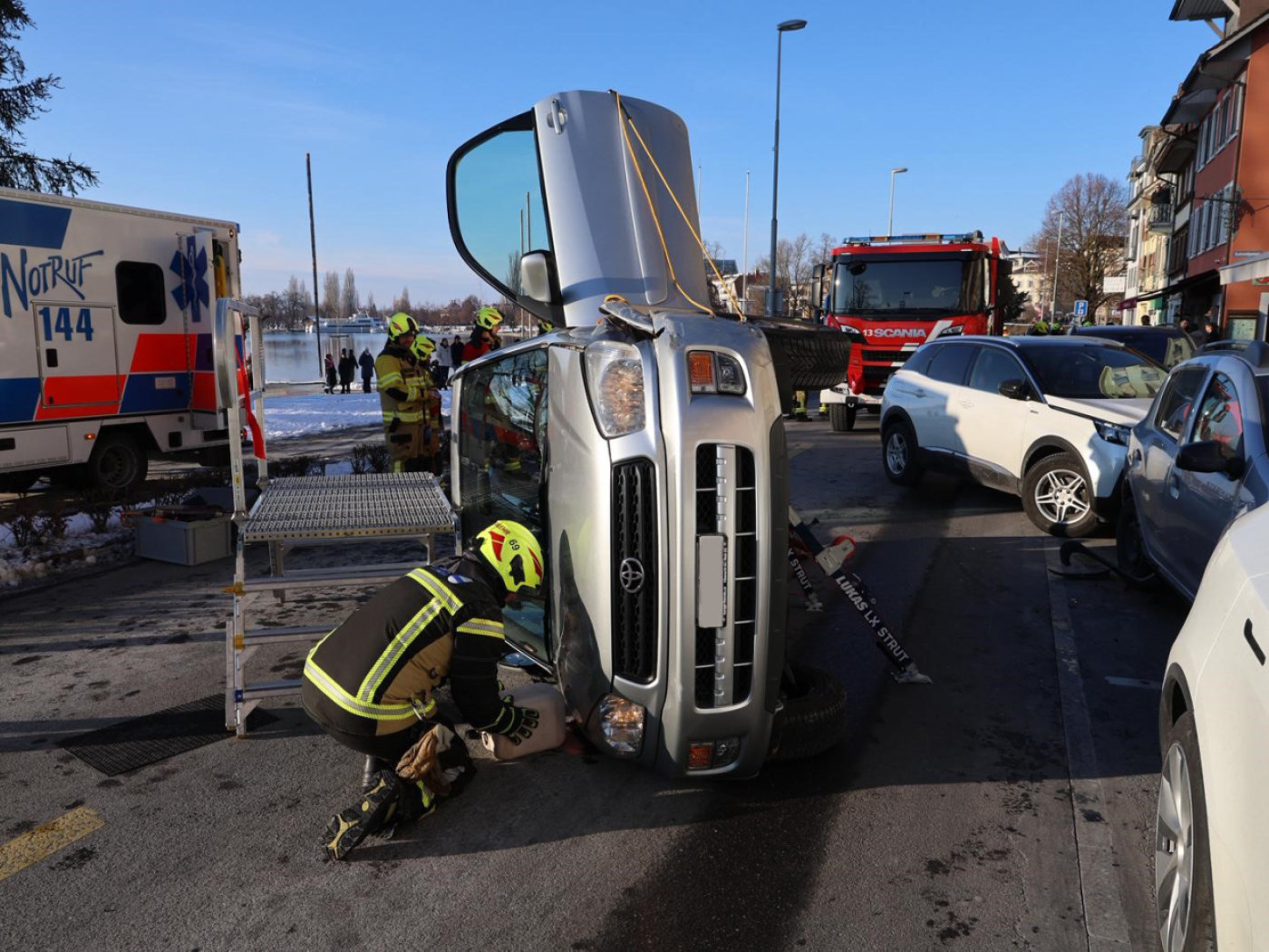 Eine 85-jährige Autofahrerin hat sich am Mittwochnachmittag bei einem Unfall in Zug erheblich verletzt. Ihr Fahrzeug kippte bei dem Selbstunfall.
