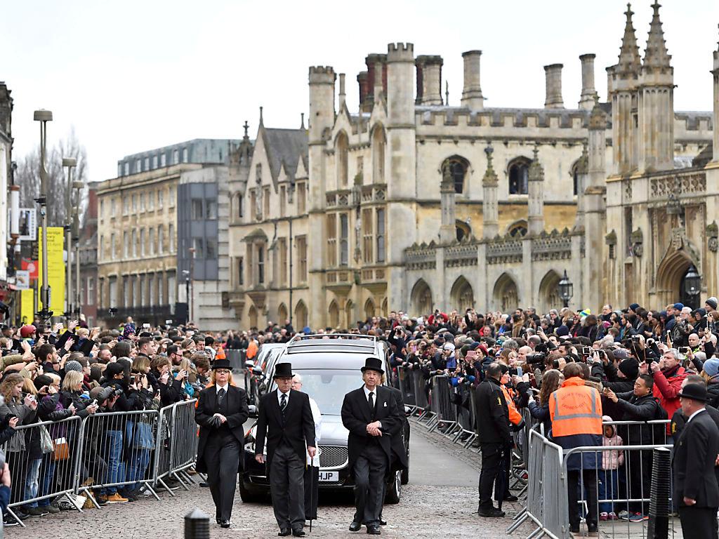 (Keystone-SDA) Fast drei Wochen nach dem Tod von Stephen Hawking haben sich Familie, Freunde und Kollegen am Samstag zu einer Trauerfeier versammelt. Die Öffentlichkeit war zu der Feier in der Kirche Great St. Mary’s im britischen Cambridge nicht zugelassen.