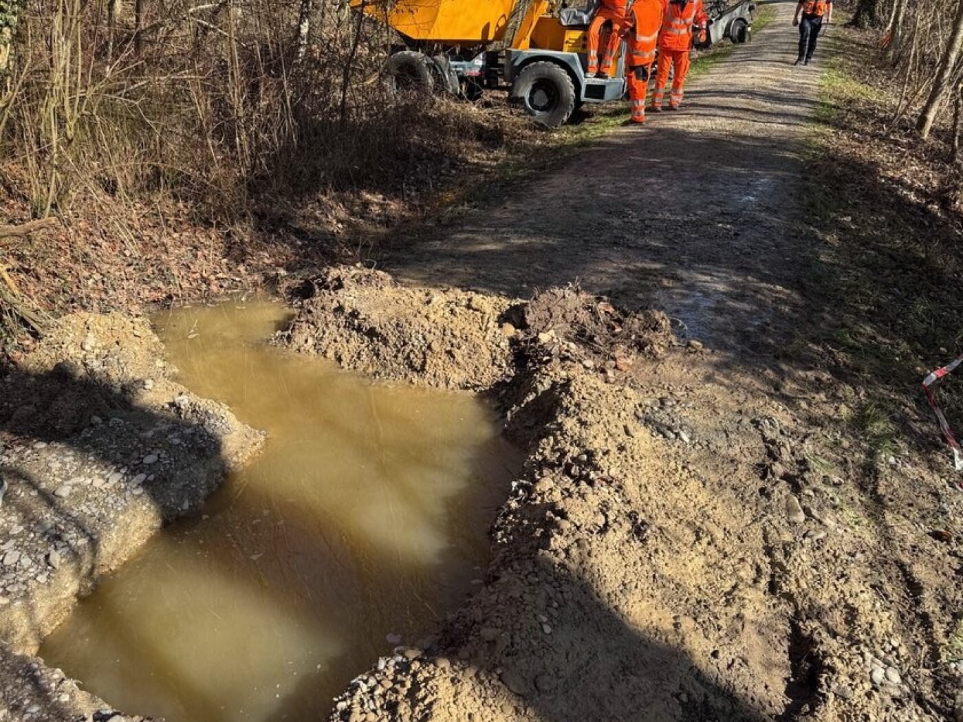 In Winterthur-Sennhof ist am Freitagmittag Abwasser in eine Gewässerschutzzone ausgetreten. Laut Stadtpolizei Winterthur wurde mindestens eine Abwasserdruckleitung beschädigt. In mehreren Gemeinden sollen die Bewohner nun Wasser sparen.