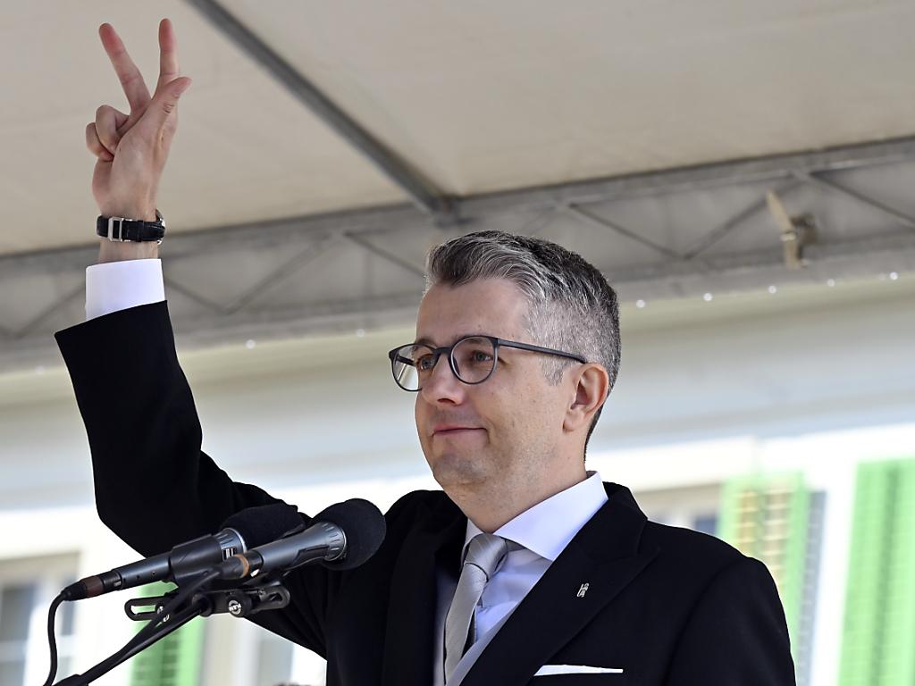 Benjamin Mühlemann bei der Vereidigung als Glarner Landammann im Jahr 2022. Der FDP-Politiker ist mit einem Bestresultat in den Ständerat gewählt worden. KEYSTONE/WALTER BIERI sda-ats