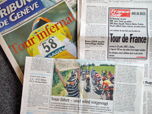 Eine Woche nachdem der Zürcher Tages Anzeiger den Boykott von ARD und ZDF noch als «scheinheilig» bezeichnet hatte, berichtete auch er nicht mehr über das Klassement sondern nur noch über die Entwicklung an der Doping-Front.