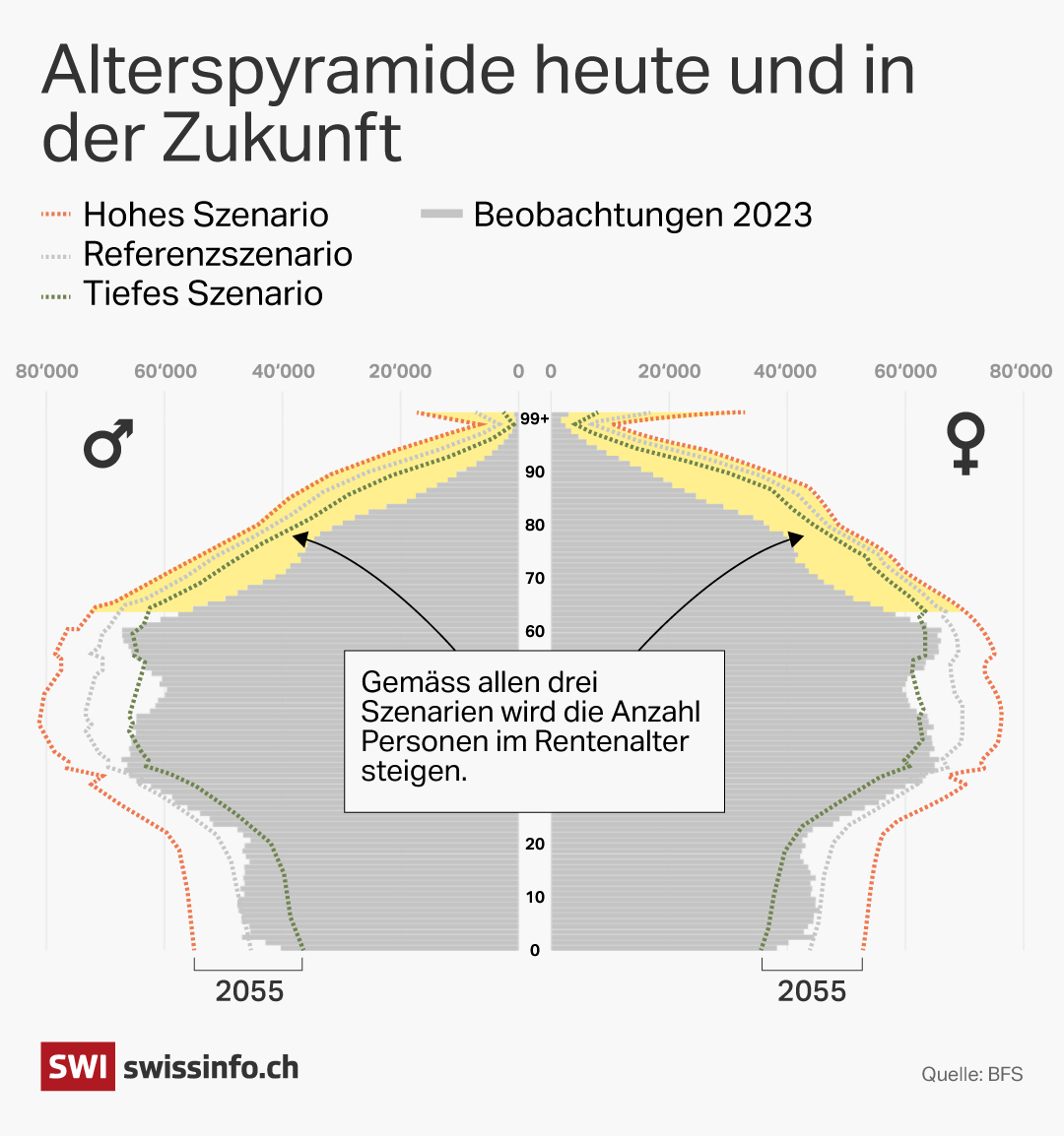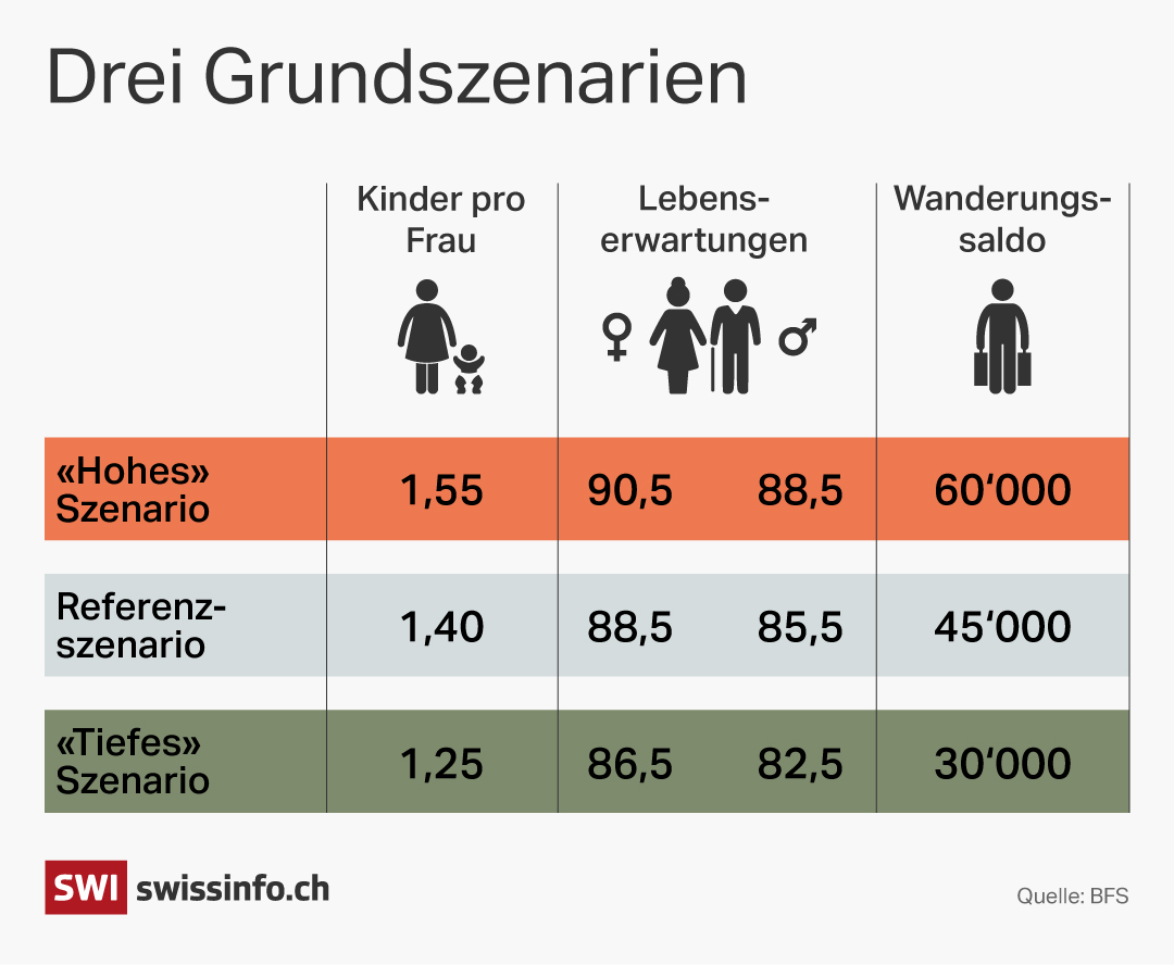 In der Bevölkerungsprognose der UNO ist dieser Wettbewerb der Länder berücksichtigt. «Die UNO macht ein Gleichgewichtsmodell. Und der Median für die Schweiz liegt sehr nah am tiefen Szenario des Bundesamtes für Statistik», sagt Budliger.