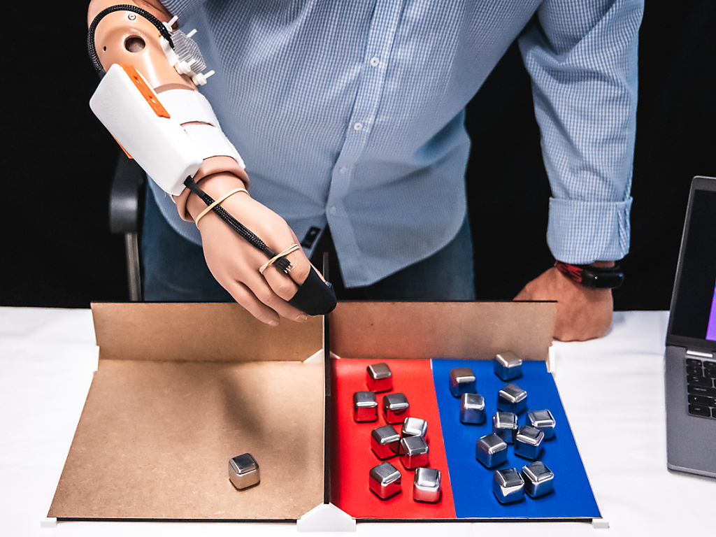 (Keystone-SDA) Mit einer neuen Prothese kann ein 57-jähriger Mann mit der amputierten Hand Wärme spüren. Eine neue Studie zeigt, wie er mit der von Forschenden aus der Schweiz und Italien entwickelten Prothese verschiedene Materialien anhand ihrer Temperatur unterscheiden kann.
