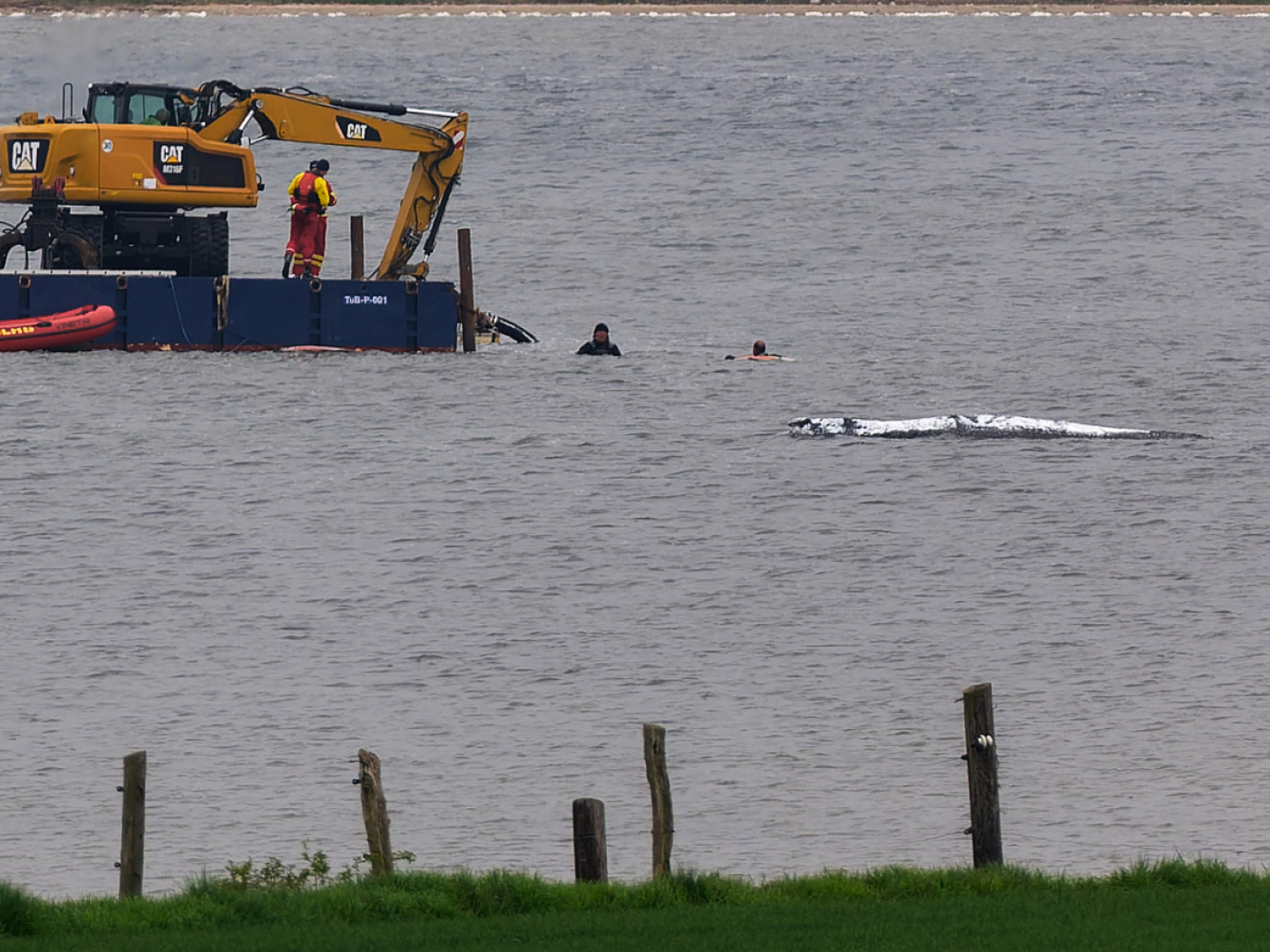 Bislang geplant war, dass unter den Wal eine zwischen Pontons – also schwimmenden Plattformen – befestigte Plane geführt wird. Damit soll er aus dem flachen Bereich geborgen und später Richtung Nordsee gebracht werden. Die Pontons sollen dazu von einem Schlepper an einer langen Leine gezogen werden. Die Netzplane, auf der das Tier zwischen Pontons in die Nordsee und in den Atlantik transportiert werden soll, war nach Behördenangaben bereits im Wasser.