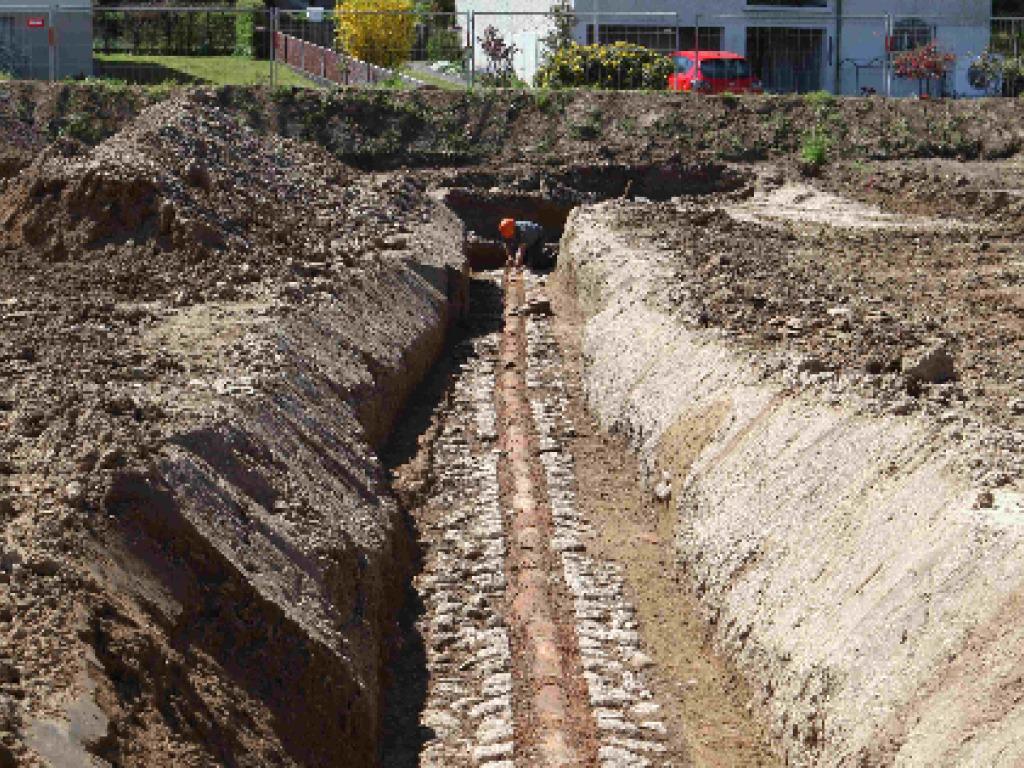 Die Lokalisierung sei dank der Hilfe zweier ortskundiger Bodenforscher gelungen, schreibt die Kantonsarchäologie am Montag in einer Mitteilung. Sie hatten die Wasserleitung vor Jahren bei Baumassnahmen in naheliegenden Parzellen gesichtet und konnten mit Hilfe der ungefähren Ausrichtung relativ präzise auf die Lage des antiken Bauwerkes hinweisen.