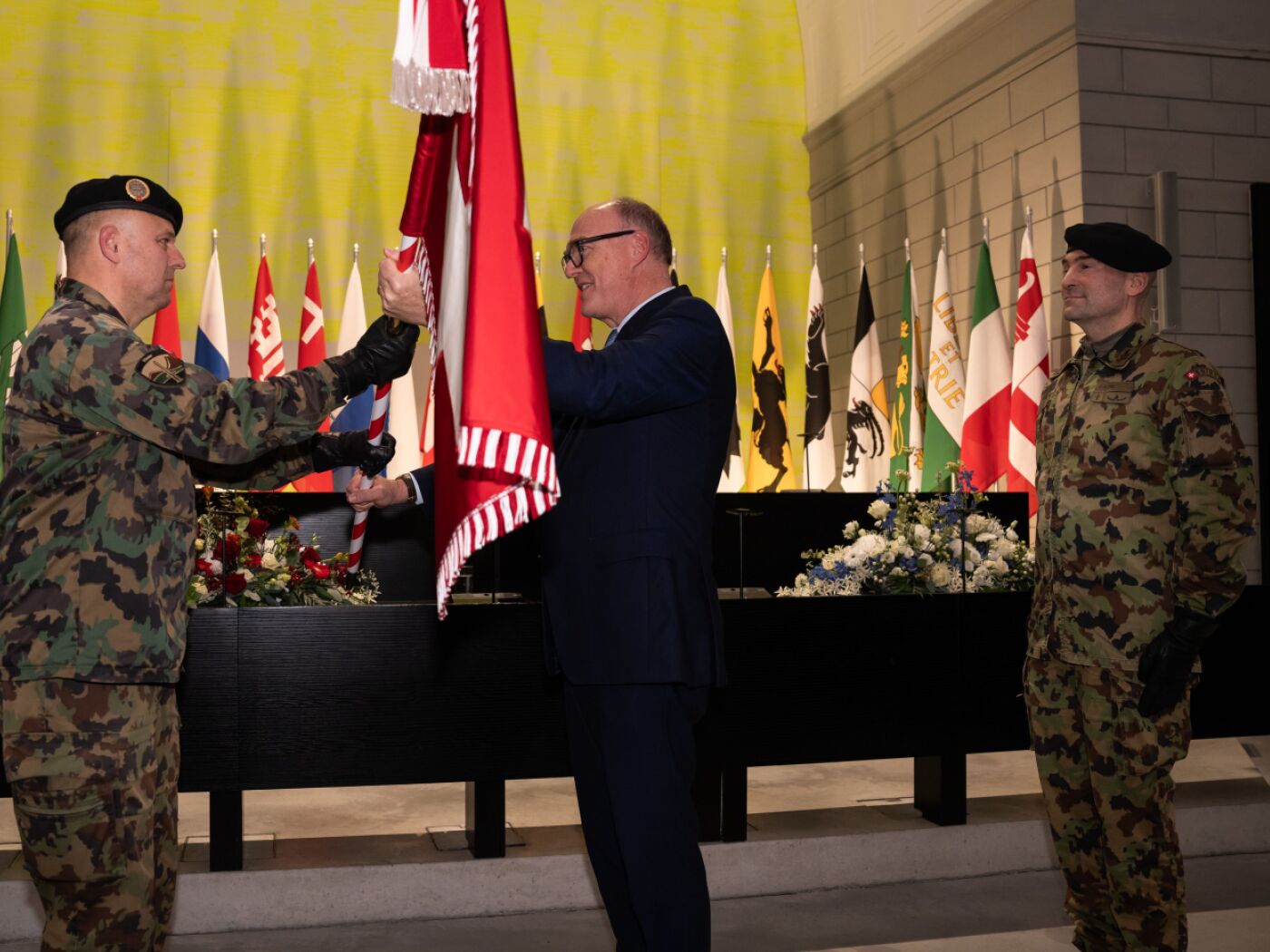 (Keystone-SDA) Rund 120 Gäste aus Politik, Wirtschaft und Armee haben die Standartenübergabe im Ratssaal mitverfolgt, wie das Eidgenössische Departement für Verteidigung, Bevölkerungsschutz und Sport (VBS) mitteilte.