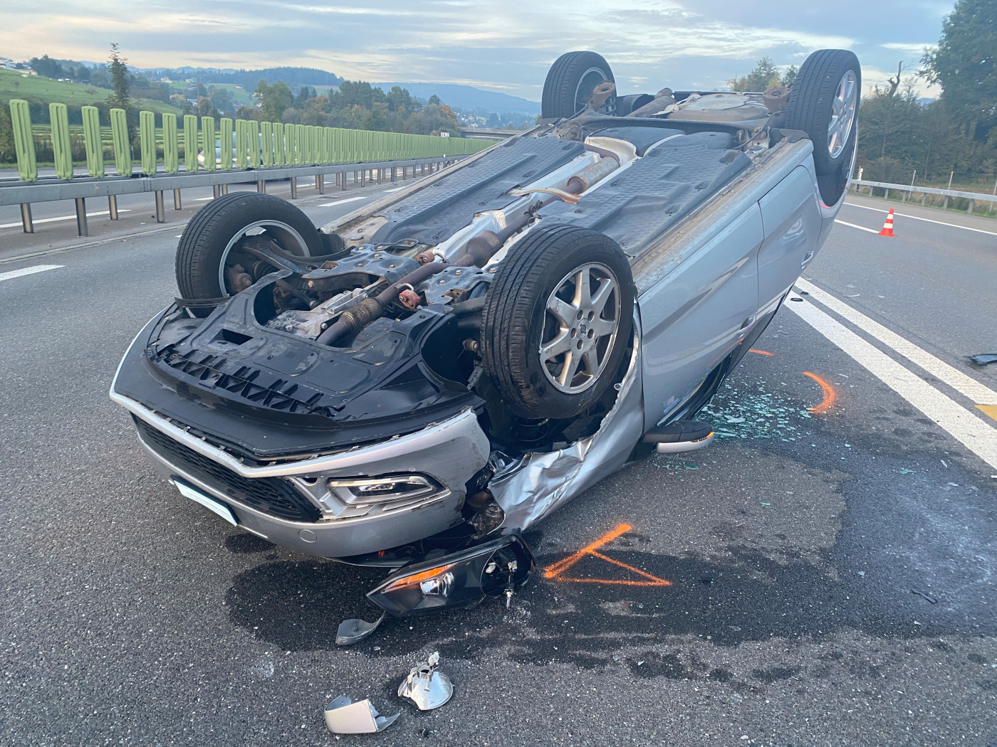 Auto überschlägt sich auf der Autobahn in Baar und landet auf Dach