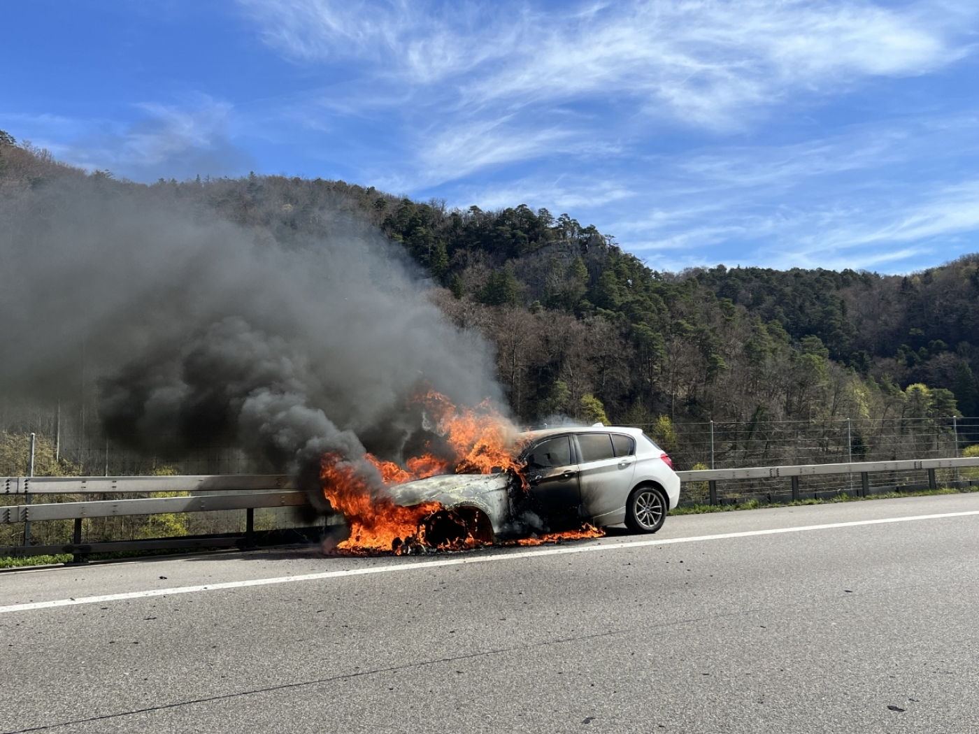 Ein Auto hat am Sonntag auf der A2 bei Diegten im Baselbiet Feuer gefangen und ist ausgebrannt. Bei dem Feuer kurz nach dem Oberburgtunnel in Autobahnfahrtrichtung Basel wurde niemand verletzt. Den Vollbrand konnte die Feuerwehr laut der Polizei Basel-Landschaft rasch löschen.