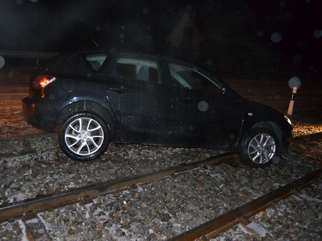 Der Autolenker hatte um 02.40 Uhr in einer Kurve die Herrschaft über das Fahrzeug verloren. In der Folge rutschte das Auto über die Gegenfahrbahn und kam auf den Bahngleisen zum Stillstand. Das Unfallfahrzeug musste mit einem Kran geborgen und anschliessend abgeschleppt werden.