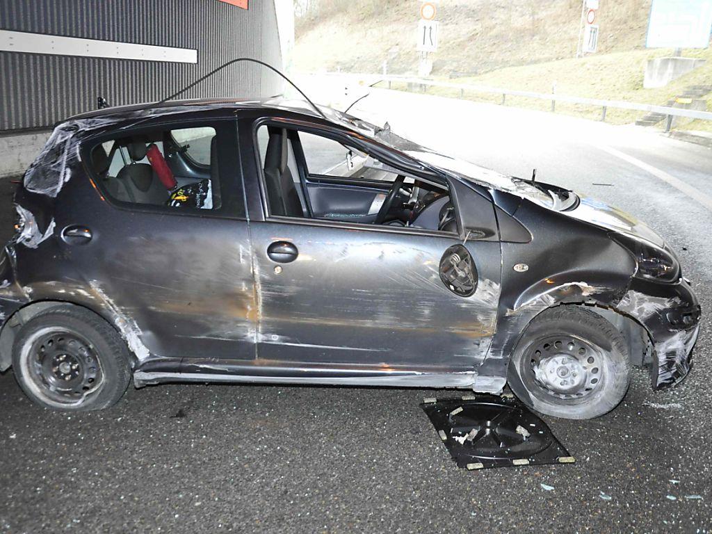 Vor dem Überschlag kollidierte das Auto mit dem Bordstein und schliff an der Tunnelwand entlang. Unfallursache ist gemäss der Polizei übersetzte Geschwindigkeit.