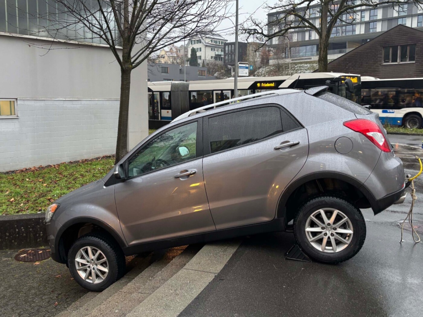 (Keystone-SDA) Wie die Luzerner Staatsanwaltschaft am Montag mitteilte, blieb das Auto auf der Treppe stecken und musste mit einem Kran geborgen werden. Verletzt wurde niemand.