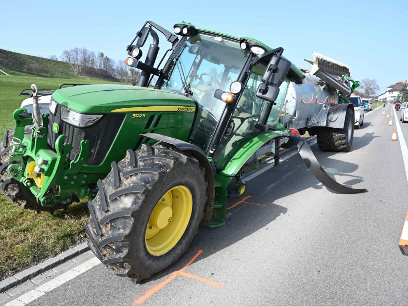 Autofahrer kollidiert in Zuckenriet SG mit einem Traktorreifen