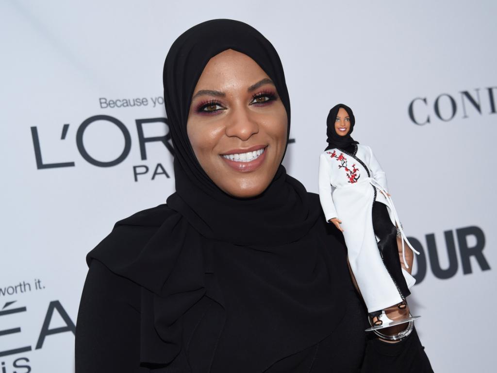 Mattel veröffentlichte ein Foto, das Ibtihaj Muhammad mit der neuen Barbie-Puppe zeigt. Neben dem Hidschab trägt die Puppe ein klassisches Fechterinnen-Outfit. Sie soll im kommenden Jahr in den Handel kommen.