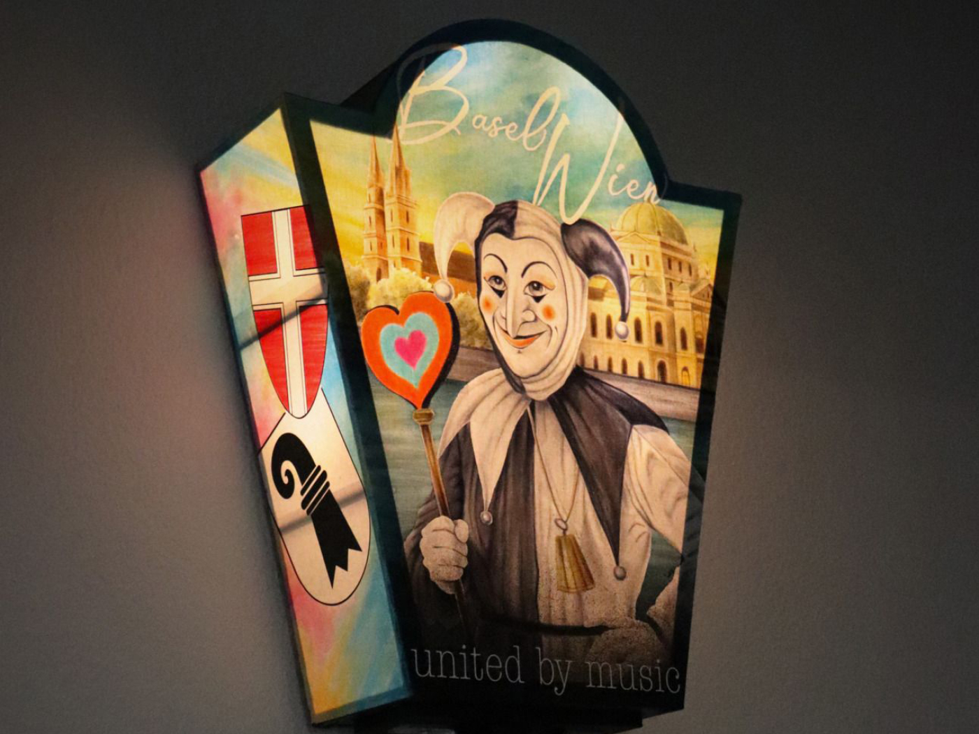 Auf der Laterne ist der letztjährige ESC-Gewinner JJ abgebildet. Der österreichische Sänger holte in der Basler St. Jakobshalle mit «Wasted Love» den Sieg und somit den ESC 2026 nach Wien. Auf der Rückseite der Laterne sind die Fasnachtsfigur Ueli sowie das Wiener Opernhaus und das Basler Münster zu sehen.