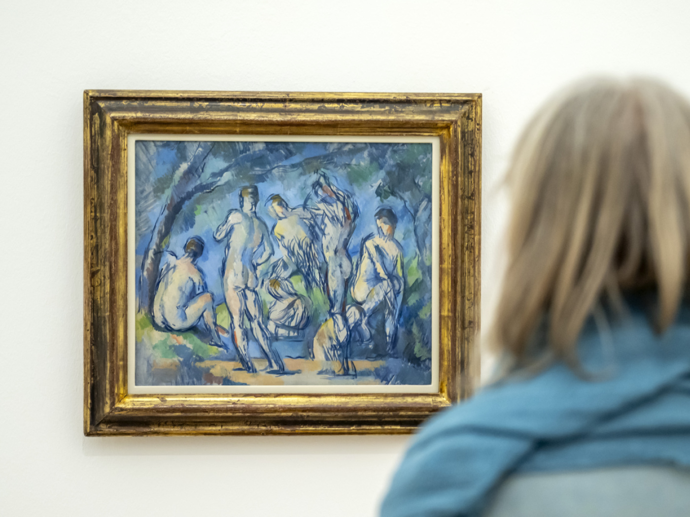 Abgesehen vom ersten Raum ist die Ausstellung, die sich auf das Spätwerk konzentriert, thematisch aufgebaut. Dadurch wird die Entwicklung von Cézannes Malerei augenscheinlich fassbar.