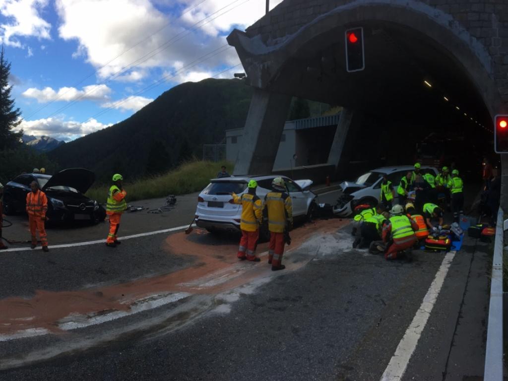 Ein entgegenkommender, in Richtung Süden fahrender Autofahrer versuchte, dem Auto auszuweichen, wie die Kantonspolizei Graubünden schrieb. Dennoch kam es zu einer heftigen Streifkollision der beiden Autos und danach zu einem frontalen Zusammenstoss mit einem nachfolgenden, ebenfalls nach Süden fahrenden Auto.
